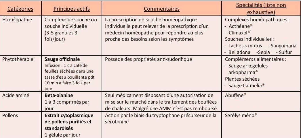 À noter que le seul médicament disposant d'une autorisation de mise sur le marché dans le traitement des bouffées de chaleur, la bêta-alanine (ABUFEN®), n'est pas remboursé par la Sécurité sociale.